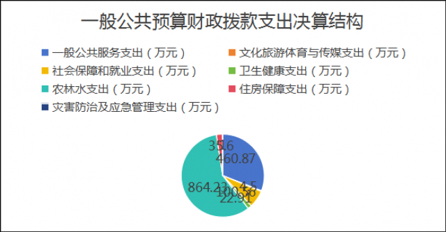 2024年度一般公共预算财政拨款支出1489.67万元,主要用于以下方面:一般公共服务支出460.87万元,占30.9%;文化旅游体育与传媒支出4.50万元,占0.3%;社会保障和就业支出100.56万元,占6.8%;卫生健康支出22.91万元,占1.54%;农林水支出864.23万元,占58%;住房保障支出35.60万元,占2.4%;灾害防治及应急管理支出1万元,占0.06%。(图6:一般公共预算财政拨款支出决算结构)(饼状图)