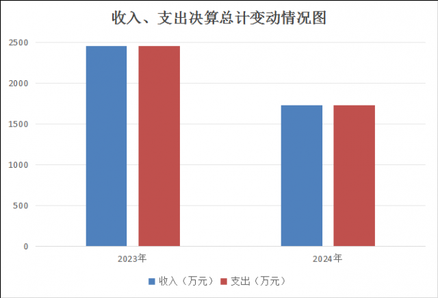 2024年度收入、支出总计均为1730万元。与2023年度相比,收入、支出总计各减少724.05万元,下降29.5%。主要变动原因是人员经费减少。