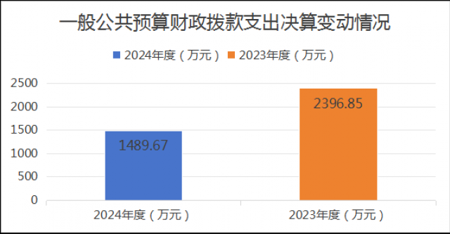 2024年度一般公共预算财政拨款支出1489.67万元,占本年支出合计的86.1%。与2023年度相比,一般公共预算财政拨款支出减少907.18万元,下降37.8%。主要变动原因是人员经费减少。