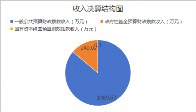2024年度本年收入合计1730万元,其中:一般公共预算财政拨款收入1489.67万元,占86.1%;政府性基金预算财政拨款收入240.02万元,占13.8%;国有资本经营预算财政拨款收入0.3万元,占0.1%。