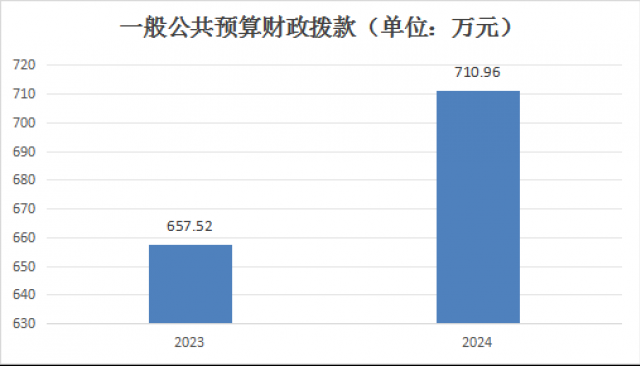 2024年度一般公共预算财政拨款支出710.96万元,占本年支出合计的13.15%。与2023年度相比,一般公共预算财政拨款支出增加53.44万元,增长8.13%。主要变动原因是财政增大教育投入。