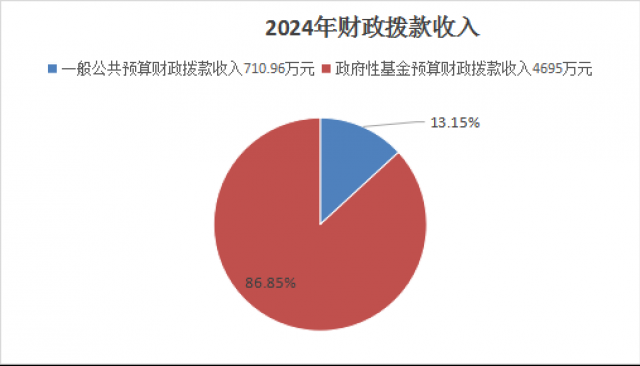 2024年度本年收入合计5405.96万元,其中:一般公共预算财政拨款收入710.96万元,占13.15%;政府性基金预算财政拨款收入4695万元,占86.85%;国有资本经营预算财政拨款收入0万元,占0%;上级补助收入0万元,占0%;事业收入0万元,占0%;经营收入0万元,占0%;附属部门上缴收入0万元,占0%;其他收入0万元,占0%。