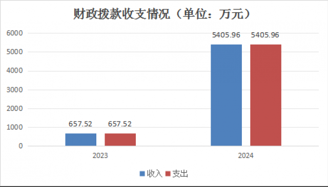 2024年度财政拨款收、支总计均为5405.96万元。与2023年度657.25万元相比,收、支总计各增加4748.44万元,增长722.17%。主要变动原因是新建分园增大投入