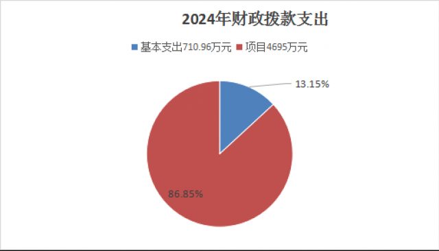 2024年度本年支出合计5405.96万元,其中:基本支出710.96万元,占13.15%;项目支出4695万元,占86.85%。上缴上级支出0万元,占0%;经营支出0万元,占0%;对附属部门补助支出0万元,占0%。