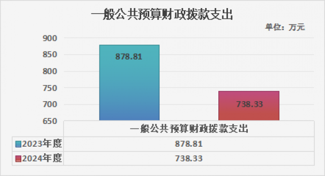 2024年度一般公共预算财政拨款收、支总计均为738.33万元。与2023年度相比,收、支总计各减少140.48万元,下降了15.98%。主要变动原因是项目减少支出等。