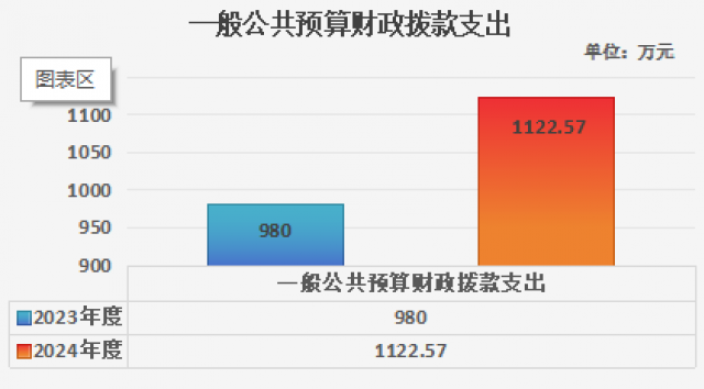 2024年度一般公共预算财政拨款支出1122.57万元,占本年支出合计的100%。与2023年度相比,一般公共预算财政拨款支出增加142.57万元,增幅14.55%。主要变动原因是教育支出增加。