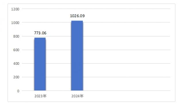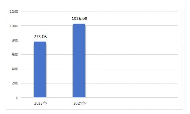 2024年度收、支总计均为1026.09万元。与2023年度相比,收、支总计各增加253.03万元,增加24.65%。