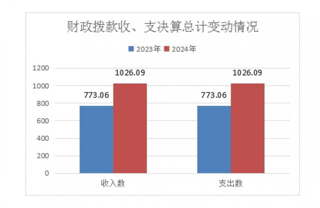 2024年度财政拨款收、支总计均为1026.09万元。与2023年度相比,财政拨款收、支总计各增加253.03万元,增长24.65%。