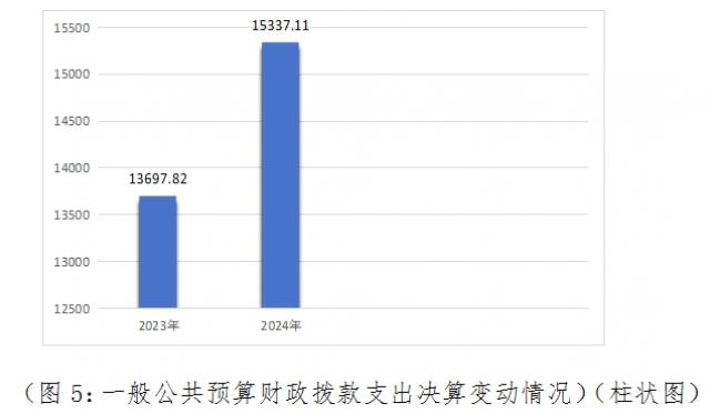 2024年度一般公共预算支出决算数为15337.11万元,完成预算100%。其中: