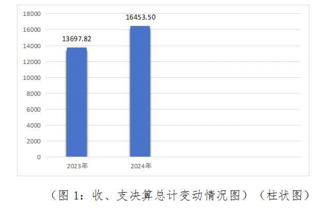 2024年度收、支总计均为16453.50万元。与2023年度相比,收、支总计各增加2755.68万元,增长20.12%。主要变动原因为学生宿舍食堂综合楼建设款项。