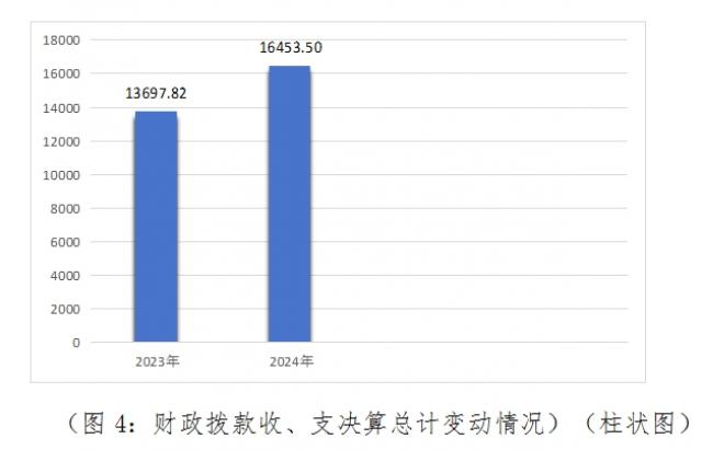 2024年度财政拨款收、支总计均为16453.50万元。与2023年度相比,财政拨款收、支总计各增加2755.68万元,增长20.12%。主要变动原因是宿舍食堂综合楼建设款。