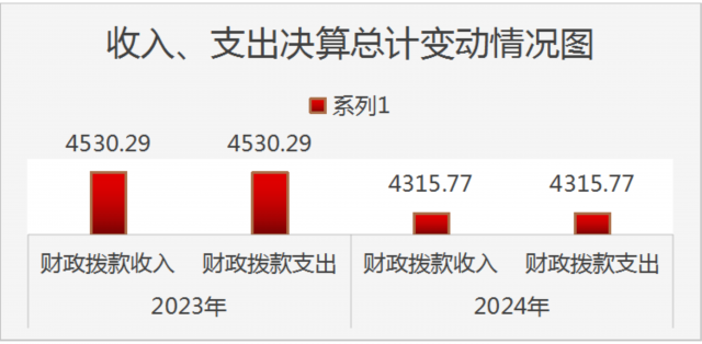 2024年度财政拨款收、支总计均为4315.77万元。与2023年度相比,财政拨款收、支总计各减少214.52万元,