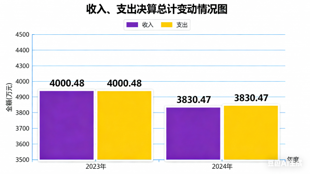 2024年度收入、支出总计均为3830.47万元。与2023年度相比,收入、支出总计各减少170.01万元,下降4.25%。主要变动原因是维修费支出减少。