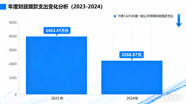 2024年度一般公共预算财政拨款支出3268.87万元,占本年支出合计的85.34%。与2023年度相比,一般公共预算财政拨款支出减少194.54万元,下降5.62%。主要变动原因是维修费用减少。