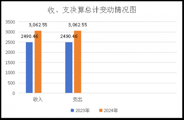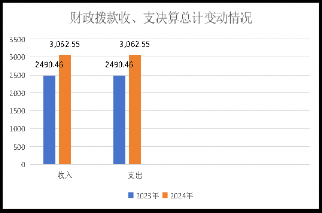 2024年度收、支总计各3062.55万元。与2023年相比,收、支总计各增加527.09万元,增长22.97%。主要变动原因是原渠县临巴镇第二小学并入人员经费增加。