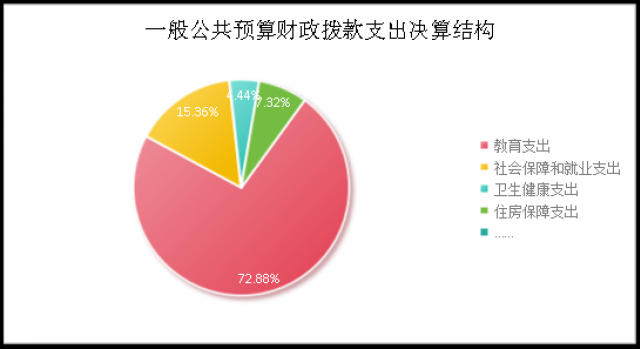 2024年一般公共预算财政拨款支出2591.27万元,主要用于以下方面:一般公共服务支出0.00万元,占0.00%;教育支出1888.46万元,占72.88%;科学技术支出0.00万元,占0.00%;文化旅游体育与传媒支出0.00万元,占0.00%;社会保障和就业支出398.04万元,占15.36%;卫生健康支出114.99万元,占4.44%;城乡社区支出0.00万元,占0.00%;农林水支出0.00万元,占0.00%;住房保障支出189.77万元,占7.32%;其他支出0.00万元,占0.00%。