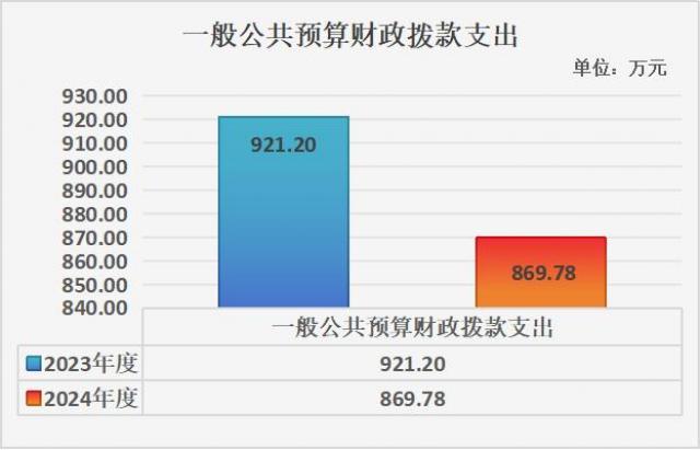 2024年度一般公共预算财政拨款支出869.78万元,占本年支出合计的100%。与2023年度相比,一般公共预算财政拨款支出减少51.42万元,减少5.58%。主要变动原因是项目金额减少。