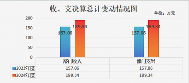 2024年度收、支总计均为189.34万元。与2023年度相比,收、支总计各增加32.28万元,增加了20.55%。主要变动原因是人员经费增加。