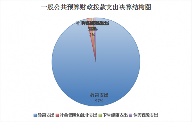 2024年度一般公共预算财政拨款支出96.89万元,主要用于以下方面:一般公共服务支出0万元,占0%;教育支出93.69万元,占96.69%;科学技术支出0万元,占0%;文化旅游体育与传媒支出0万元,占0%;社会保障和就业支出1.66万元,占1.71%;卫生健康支出0.57万元,占0.58%;住房保障支出0.98万元,占1.02%。农林水支出0万元,占0%。