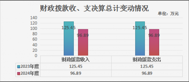 2024年度收、支总计均为96.89万元。与2023年度相比,收、支总计各减少28.56万元,减少22.76%。主要变动原因是无项目新增。
