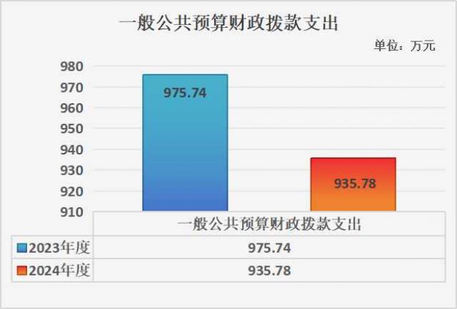 2024年度一般公共预算财政拨款支出935.78万元,占本年支出合计的100%。与2023年度相比,一般公共预算财政拨款支出减少39.96万元,降幅为4.1%。主要变动原因是教师调出及相应五险一金预算减少。