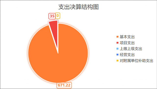 2024年度本年支出合计706.22万元,其中:基本支出671.22万元,占95.04%;项目支出35万元,占4.96%;上缴上级支出0万元,占0%;经营支出0万元,占0%;对附属单位补助支出0万元,占0%。