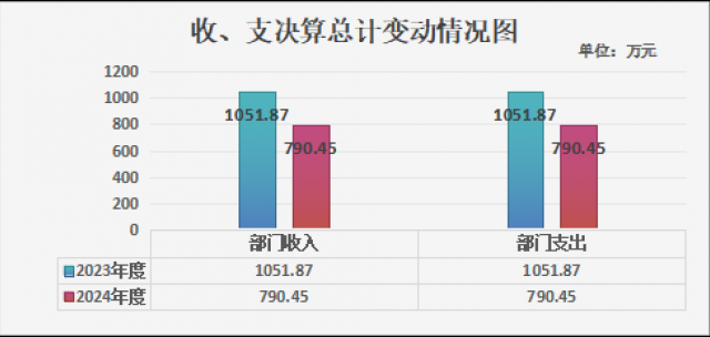 2024年度收;支总计均为790.45万元。与2023年度相比,收;支总计各减少261.42万元,下降24.85%。主要变动原因是教职工减少。