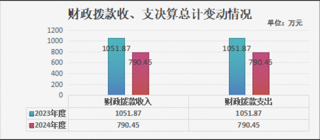2024年度财政拨款收;支总计均为790.45万元。与2023年度相比,财政拨款收;支总计各减少261.42万元,下降24.85%。主要变动原因是教职工减少。