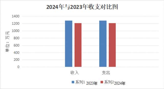 2024年度收、支总计均为1212.36万元。与2023年度相比,收、支总计各减少72.60万元,下降5.65%。主要变动原因是人员退休及项目经费减少预算支出。