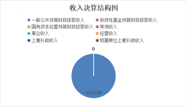 预算财政拨款收入1212.36万元,占100%;政府性基金预算财政拨款收入0万元,占0%;国有资本经营预算财政拨款收入0万元,占0%;上级补助收入0万元,占0%;事业收入0万元,占0%;经营收入0万元,占0%;附属单位上缴收入0万元,占0%;其他收入0万元,占0%。