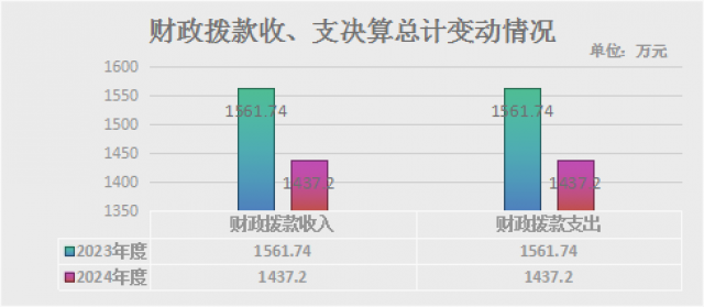 2024年度财政拨款收、支总计均为1437.2万元。与2023年度相比,财政拨款收、支总计各减少124.54万元,减少7.97%。主要变动原因是人员经费减少。
