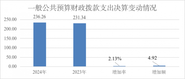 2024年度一般公共预算财政拨款支出236.26万元,占本年支出合计的66.03%。与2023年度相比,一般公共预算财政拨款支出增加4.92万元,增长2.13%。主要变动原因是:增加人员经费。