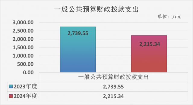 2024年度一般公共预算财政拨款支出2215.34万元,占本年支出合计的87.75%。与2023年度相比,一般公共预算财政拨款支出减少524.21万元,减少19.13%。主要变动原因是项目减少。