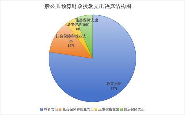 2024年度一般公共预算财政拨款支出1624.61万元,主要用于以下方面:一般公共服务支出0万元,占0%;教育支出1256.73万元,占77.36%;科学技术支出0万元,占0%;社会保障和就业支出201.28万元,占12.39%;卫生健康支出62.46万元,占3.84%;住房保障支出104.14万元,占6.41%。