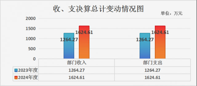2024年度收、支总计均为1624.61万元。与2023年度相比,收、支总计各增加360.34万元,增长28.50%。主要变动原因是工资人员变化及校园建设需要。