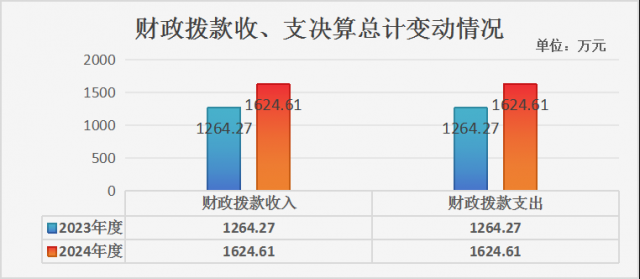 2024年度财政拨款收、支总计均为1624.61万元。与2023年度相比,财政拨款收、支总计各增加360.34万元,增长28.50%。主要变动原因是工资人员变化及校园建设费用增加。