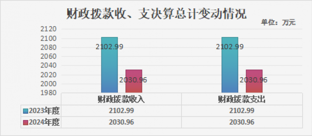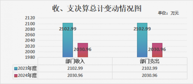 2024年度收、支总计均为2030.96万元。与2023年相比,收、支总计各减少72.03万元,减少3.42%。主要变动原因是人员减少。