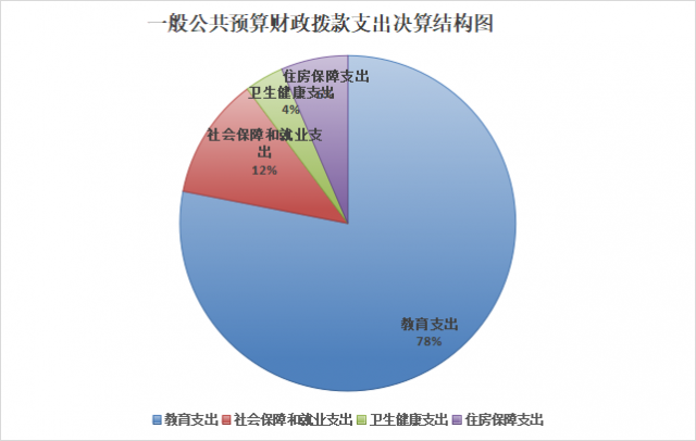 2024年一般公共预算财政拨款支出2030.96万元,主要用于以下方面:教育支出1585.60万元,占78.08%;社会保障和就业支出237.92万元,占11.71%;卫生健康支出76.98万元,占3.79%;住房保障支出130.46万元,占6.42%。