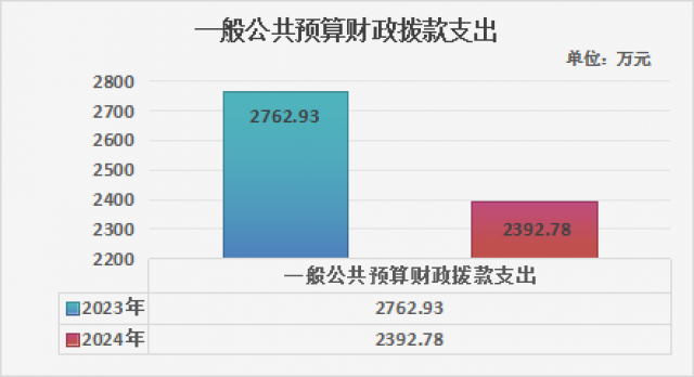 2024年度一般公共预算财政拨款支出2392.78万元,占100%。与2023年度相比,一般公共预算财政拨款支出减少370.15万元,减少15.46%。主要变动原因是人员减少等。