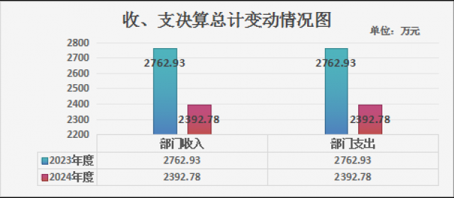 2024年度收、支总计均为2392.78万元。与2023年度相比,收、支总计各减少370.15万元,减少15.46%。主要变动原因是人员减少等。