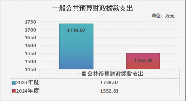 2024年度一般公共预算财政拨款支出1552.83万元,占本年支出合计的100%。与2023年度相比,一般公共预算财政拨款支出减少185.24万元,下降10.65%。主要变动原因是由于在职人员减少导致的工资福利支出下降,以及部分项目经费的调整。