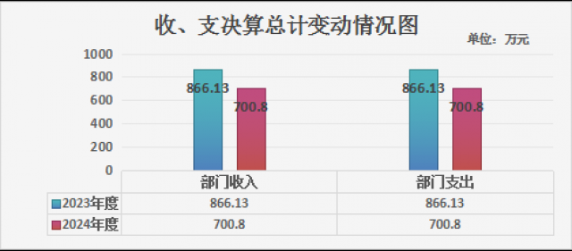 2024年度收、支总计均为700.80万元。与2023年度相比,收、支总计各减少165.33万元,减少19.09%。主要变动原因是人员减少等。