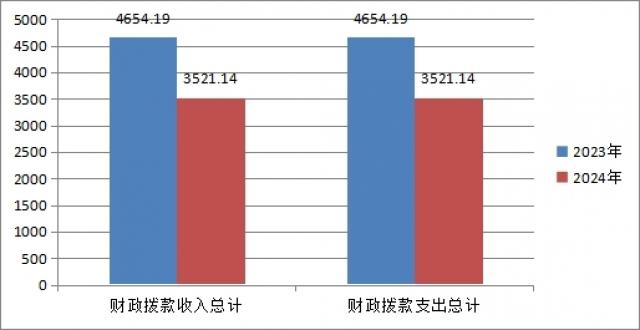 2024年度财政拨款收、支总计均为3521.14万元。与2023年度相比,财政拨款收、支总计各减少1133.05万元,减少24.34%。主要变动原因是2024年与2023年相比,有食堂综合楼建设等项目资金减少,教师退休和调出后人员经费减少等。