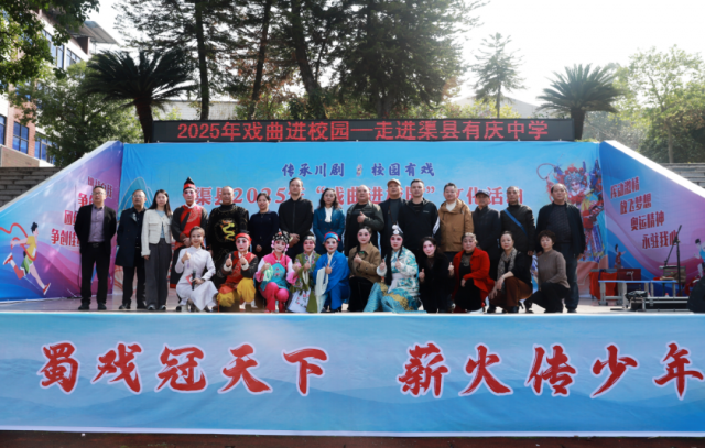 川剧作为中华优秀传统文化的瑰宝,凝聚着川渝文脉的历史基因、聚合着巴蜀文化的精神价值。保护和传承川剧对赓续川渝文脉、弘扬巴蜀艺术具有重要意义。为加强川剧通识普及教育,进一步推动川剧的传承和发展,近日,由渠县文化体育和旅游局主办,渠县文化馆、渠县有庆中学、渠县三汇川剧社承办的“传承川剧f校园有戏”——渠县2025年“戏曲进校园”文化活动走进了渠县有庆中学。