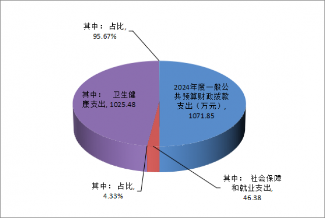 卫生健康支出:1025.48万元,占比95.67%,用于基层医疗卫生机构运营及公共卫生服务;