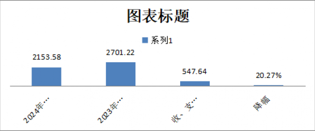 2024年度收、支总计均为2153.58万元,与2023年度(2701.22万元)相比,收、支总计各减少547.64万元,降幅20.27%,主要原因是2023年为医共体整合的首年,涉及机构合并后的资金一次性统筹安排,导致基数较高;2024年整合完成后,收支规模根据常态化运行需求核定,相较2023年有所回落,趋于稳定(图1:收、支决算总计变动情况图)(柱状图)。