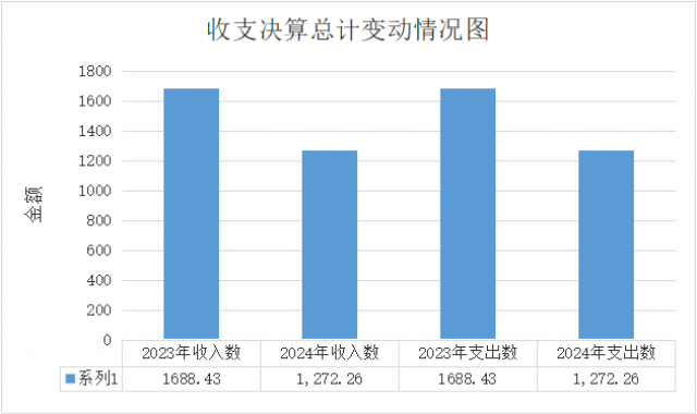 2024年度收、支总计均为1272.26万元。与2023年度相比,收、支总计各减少416.17万元,减少24.65%。