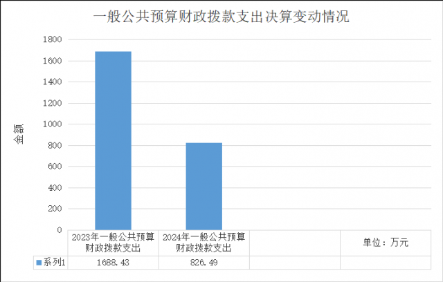 2024年度一般公共预算财政拨款支出826.49万元,占本年支出合计的64.96%。与2023年度相比,一般公共预算财政拨款支出减少861.94万元,减少51.05%。