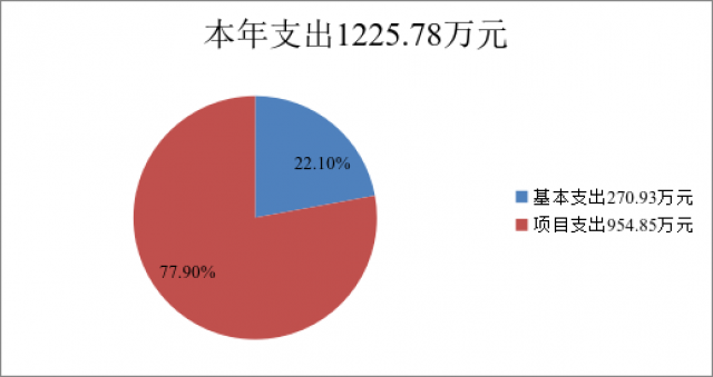 2024年度本年支出合计1225.78万元,其中:基本支出270.93万元,占22.10%;项目支出954.85万元,占77.90%;上缴上级支出0万元,占0%;经营支出0万元,占0%;对附属单位补助支出0万元,占0%。