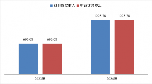 2024年度收入、支出总计均为1225.78万元。与2023年度相比,收入、支出总计各增加529.70万元,增长76.10%。主要变动原因是政府性基金预算收入大幅增加,同时一般公共预算财政拨款收入有所减少。